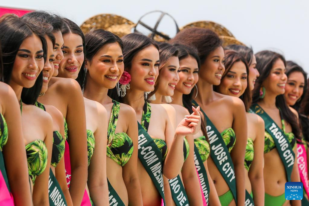 Candidates pose for photos during a media presentation of the Miss Philippines Earth 2023 in Pasay City, the Philippines, April 3, 2023. (Xinhua/Rouelle Umali)