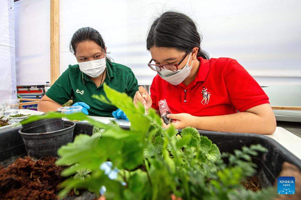 An autistic woman (R) learns bonsai arts at the Thai Autism Vocational Center in Bangkok, Thailand, April 2, 2023.