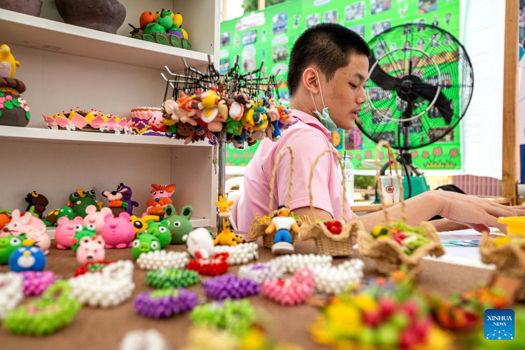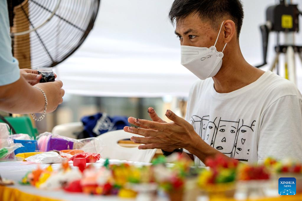 An autistic man makes handicraft at the Thai Autism Vocational Center in Bangkok, Thailand, April 2, 2023.
