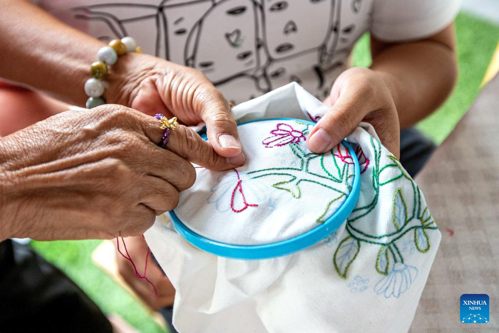 An autistic man learns embroidery at the Thai Autism Vocational Center in Bangkok, Thailand, April 2, 2023.