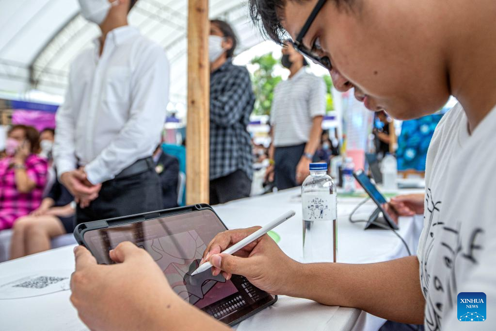 An autistic man draws at the Thai Autism Vocational Center in Bangkok, Thailand, April 2, 2023.