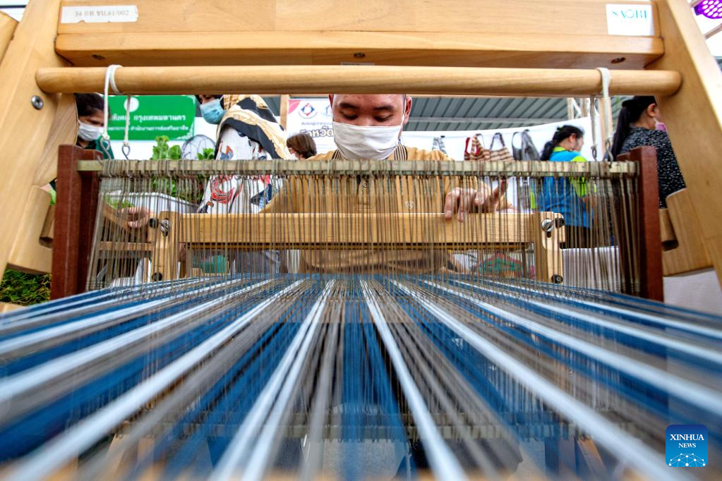 An autistic man makes a fabric at the Thai Autism Vocational Center in Bangkok, Thailand, April 2, 2023.