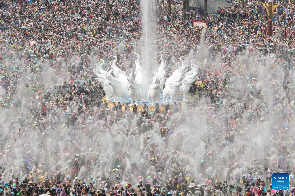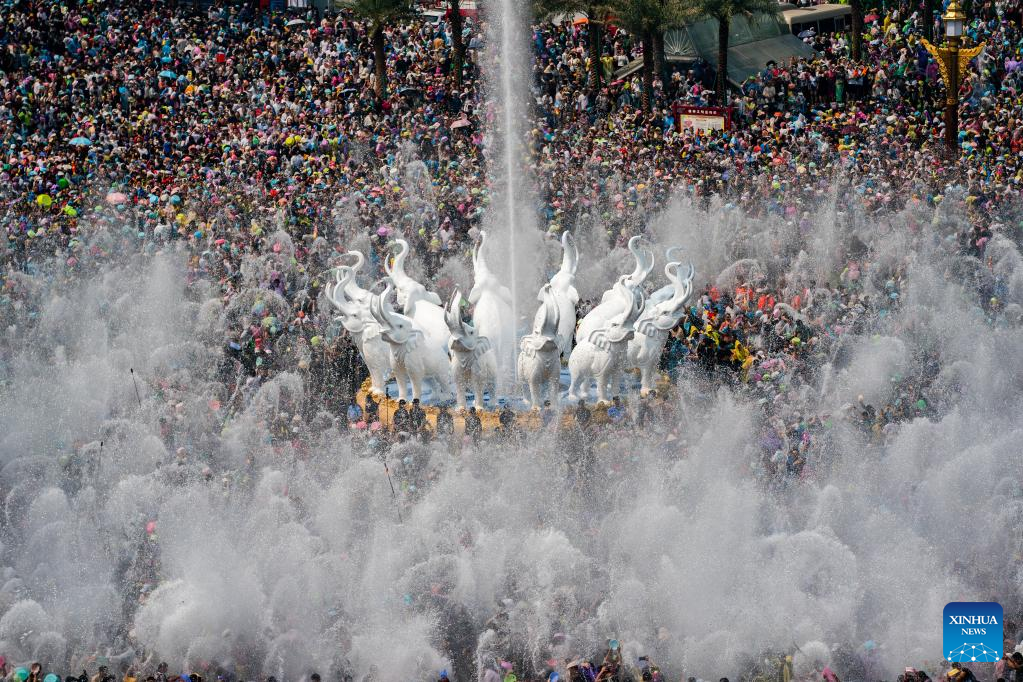 KUNMING, April 15 (Xinhua) -- The Dai ethnic group in southwest China's Yunnan Province has been busy celebrating its New Year, with local Dai people and crowds of tourists observing a grand water-splashing festival.