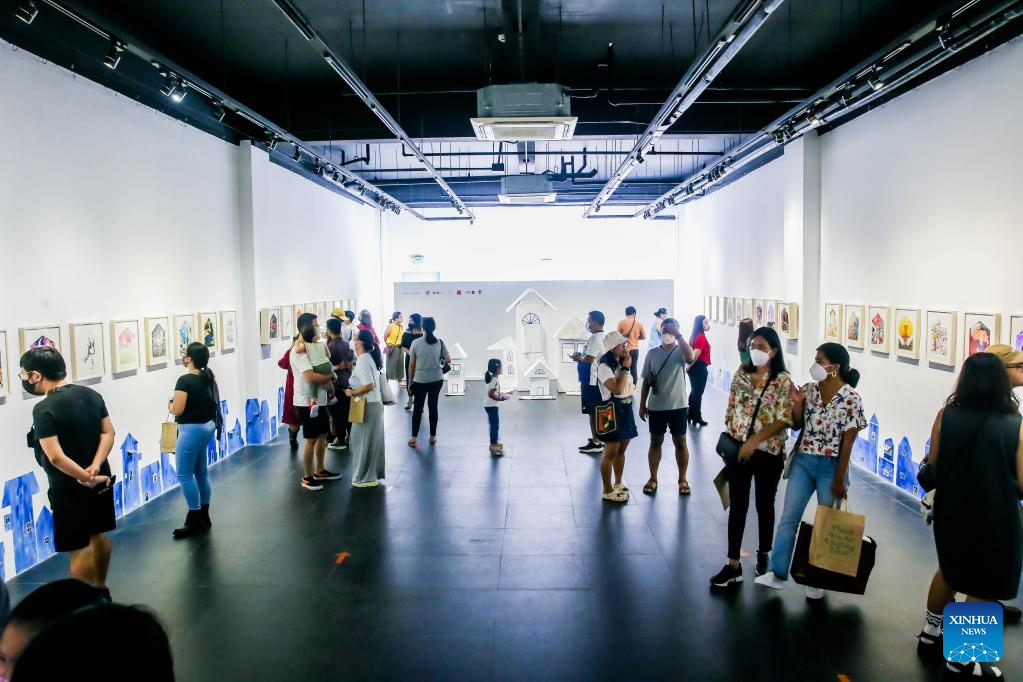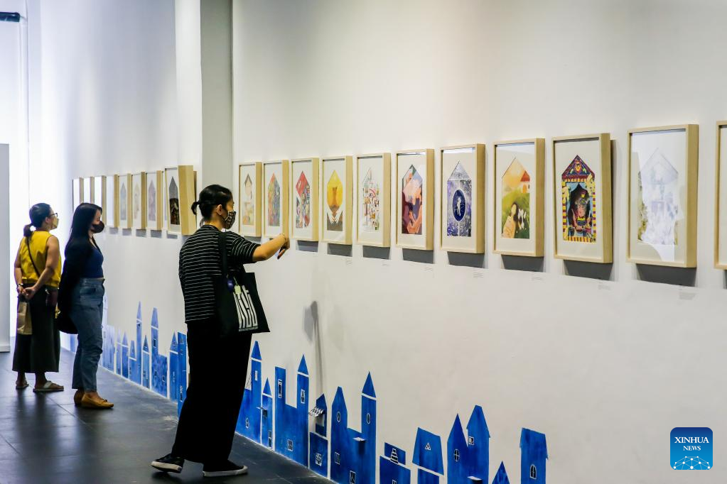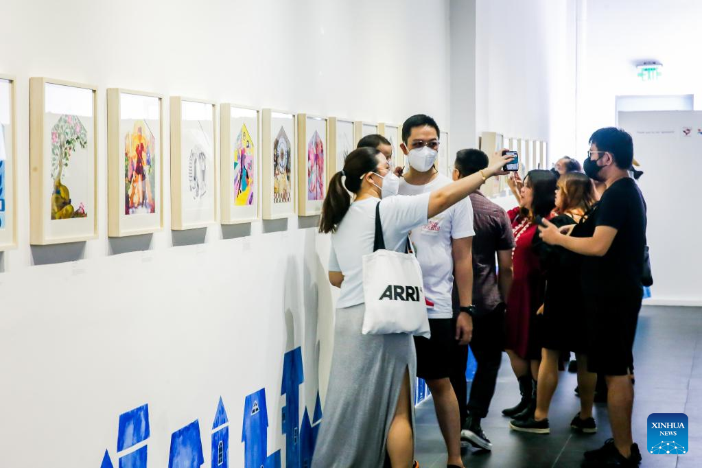 People visit an art exhibition at the University of the Philippines College of Fine Arts on the occasion of the World Art Day in Quezon City, the Philippines, April 15, 2023. The World Art Day falls on April 15 every year. (Xinhua/Rouelle Umali)