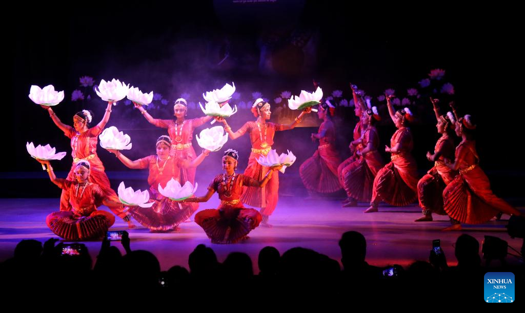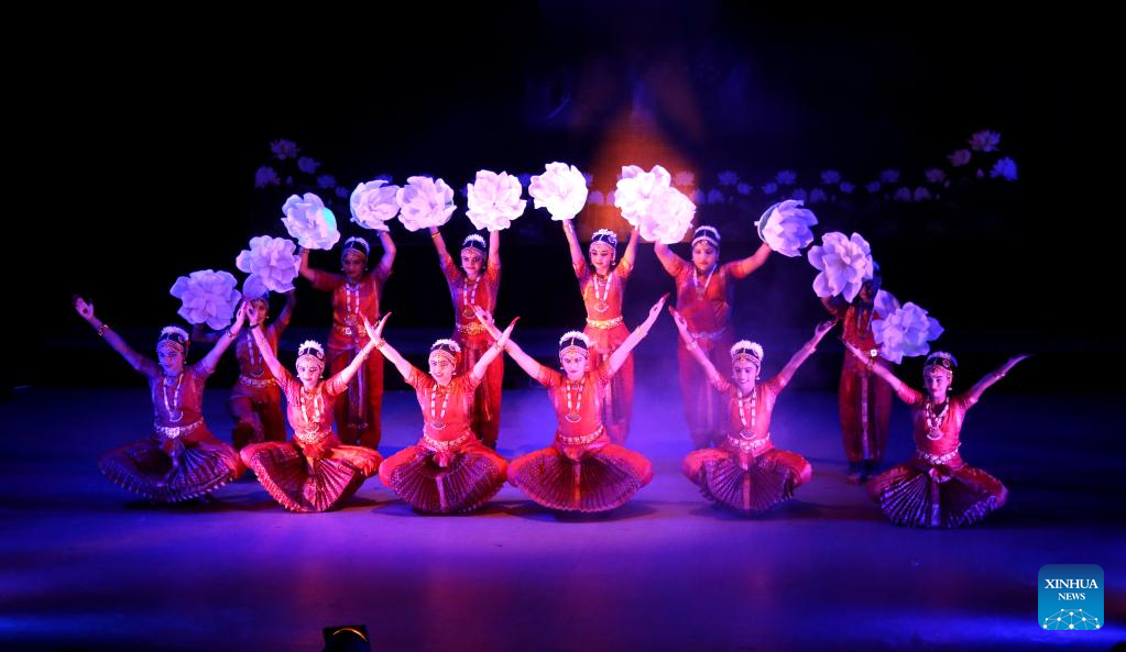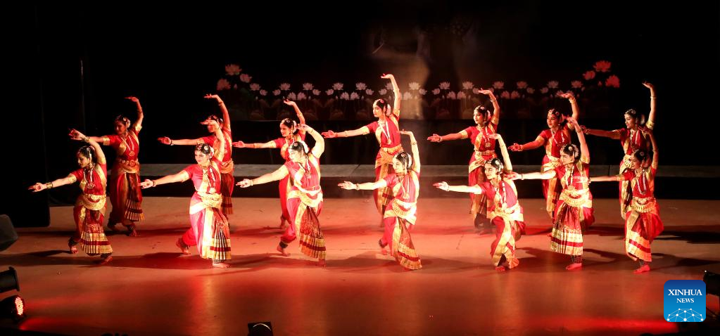 Artists perform Indian classical Bharatnatyam dance during a cultural event in Bhopal, capital of India's Madhya Pradesh state, April 18, 2023. (Str/Xinhua)