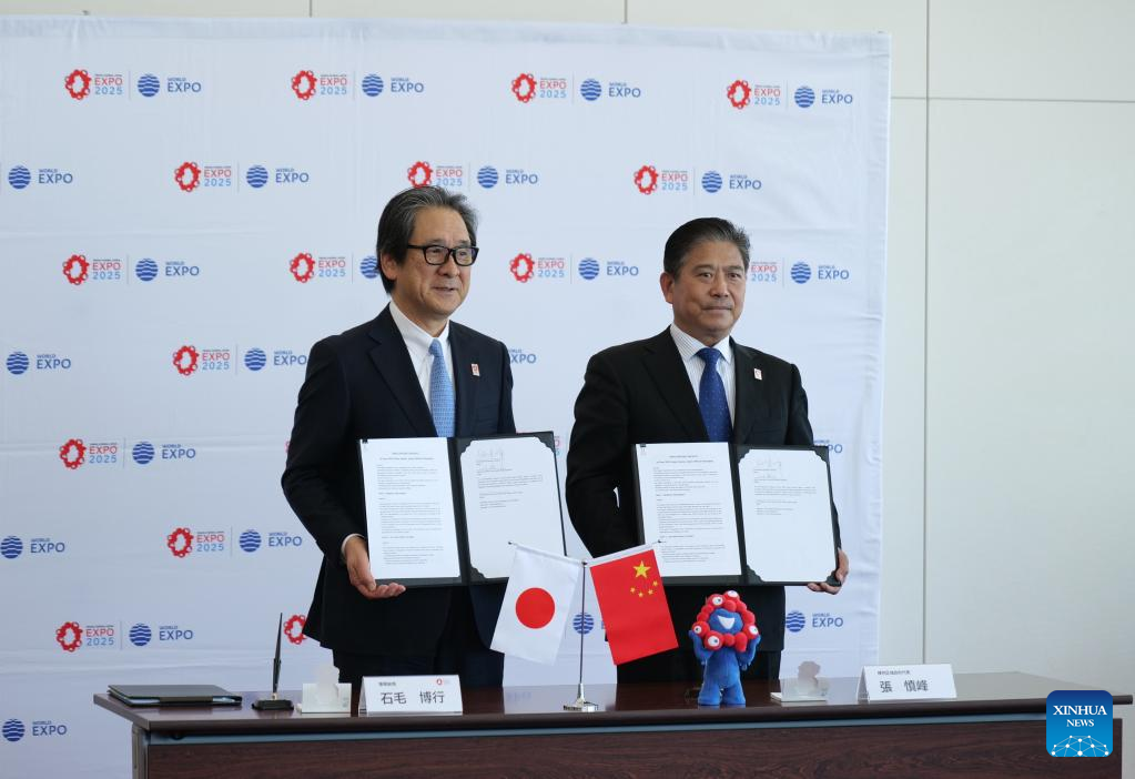 The document was signed on Thursday between Zhang Shenfeng, commissioner general of the China Pavilion and vice chairman of the China Council for the Promotion of International Trade, and Hiroyuki Ishige, secretary general of the Japan Association for the 2025 World Exposition.