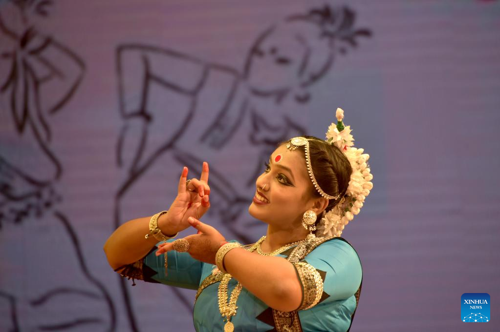 A dancer performs during a ceremony marking the International Dance Day in Dhaka, capital of Bangladesh, on April 29, 2023. The International Dance Day was celebrated Saturday in Bangladesh. (Xinhua)