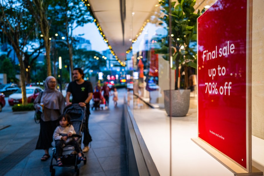 People walk past a "final sale" signboard in Kuala Lumpur, Malaysia, Dec. 26, 2022. (Xinhua/Zhu Wei)