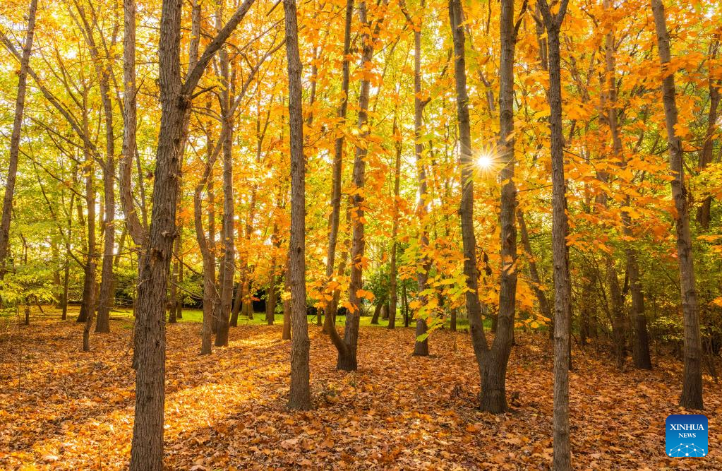 This photo taken on May 5, 2023 shows autumn scenery in a forest in Canberra, Australia. (Photo by Chu Chen/Xinhua)