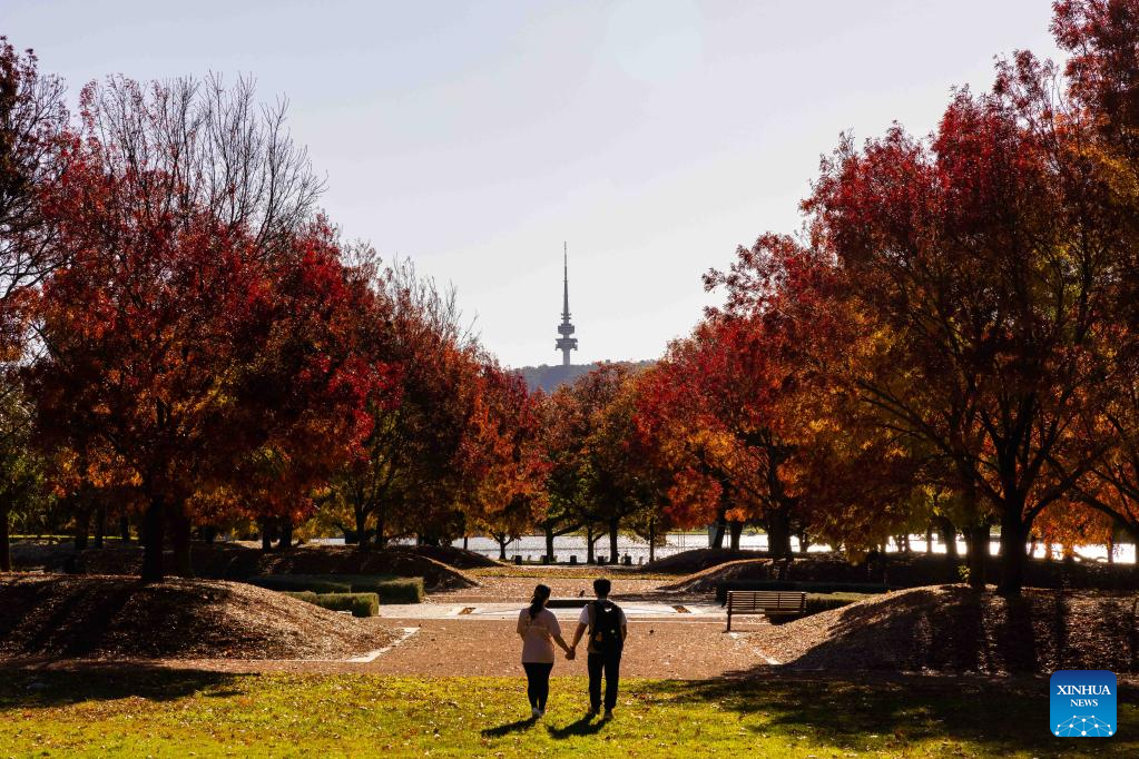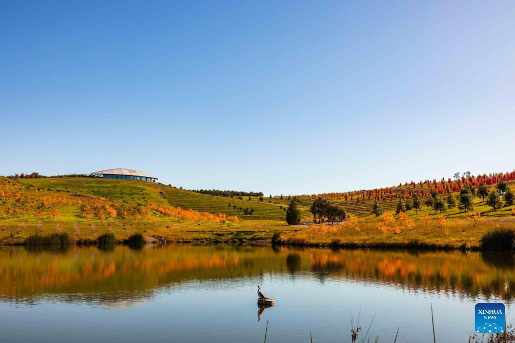 This photo taken on May 6, 2023 shows autumn scenery of the National Arboretum in Canberra, Australia. (Photo by Chu Chen/Xinhua)