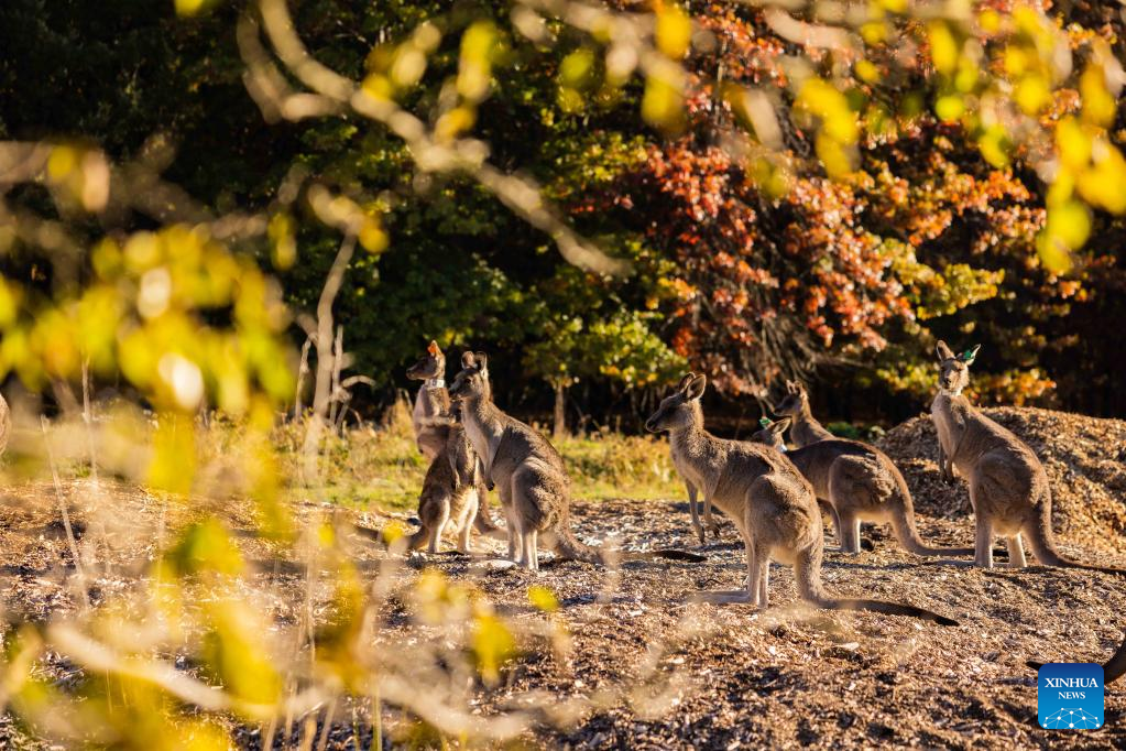 This photo taken on May 5, 2023 shows kangaroos in Canberra, Australia. (Photo by Chu Chen/Xinhua)