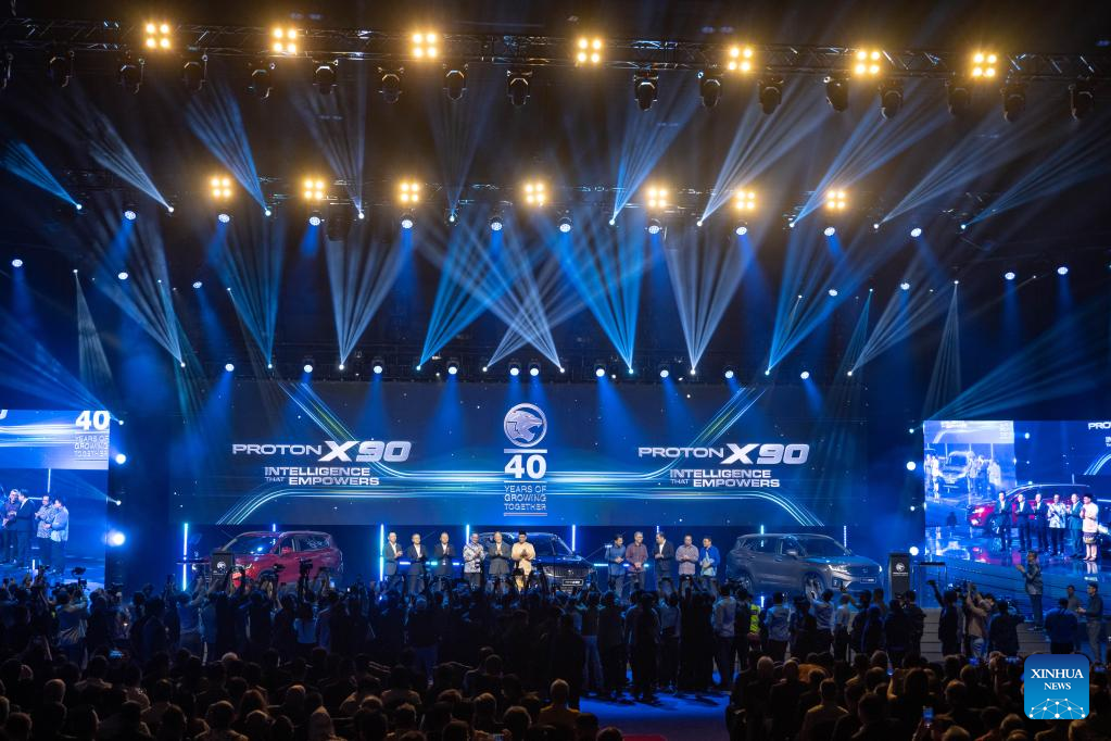 Proton's newest model, the Proton X90 sports utility vehicle (SUV), is officially launched in Kuala Lumpur, Malaysia, May 7, 2023. The continued partnership and close collaboration between Malaysian national carmaker Proton and China's Geely are of strategic importance, Malaysian Prime Minister Anwar Ibrahim said on Sunday. (Xinhua/Zhu Wei)