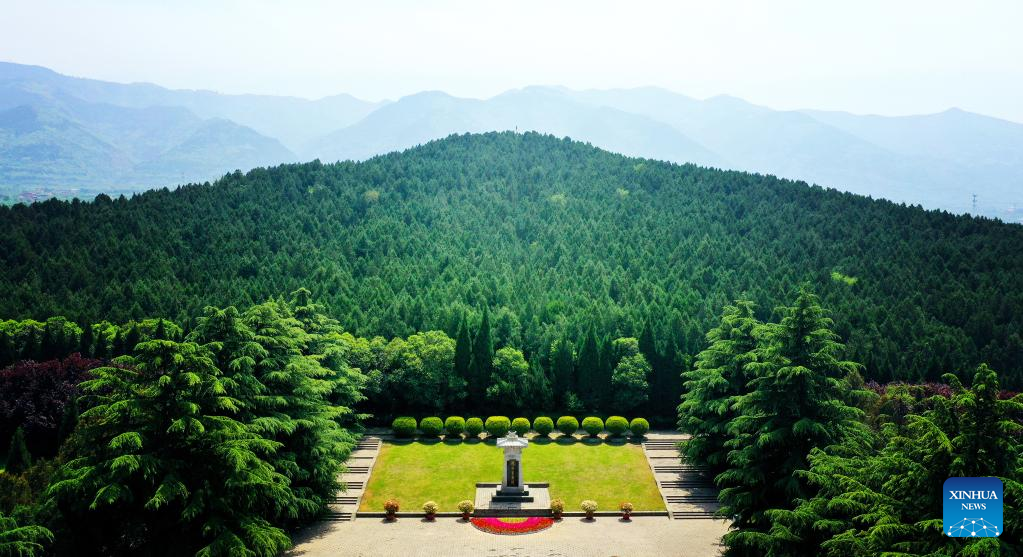This aerial photo taken on April 26, 2023 shows a view of the mausoleum of the Emperor Qinshihuang of the Qin Dynasty in Xi'an, northwest China's Shaanxi Province. Xi'an, a city with over 3,100 years of history, served as the capital for 13 dynasties in Chinese history. It is also home to the world-renowned Terracotta warriors.