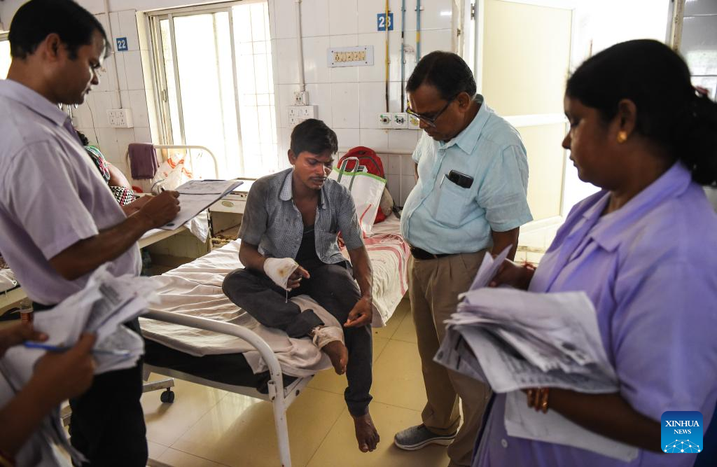 An injured passenger of a train collision receives medical examination at a hospital in Balasore district of the eastern Indian state of Odisha, June 4, 2023. The death toll in Friday's fatal train accident has been revised to 275, said a top government official of India's eastern state of Odisha on Sunday.