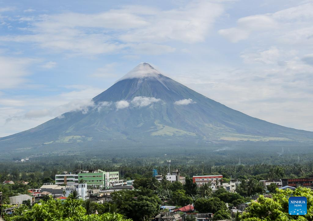 The Mayon volcano is seen in Albay province, the Philippines, on June 12, 2023. Thousands of residents at the foot of the Philippines' most active Mayon volcano in Albay province are bracing for a long eruption that can drag on for "several months," the country's chief volcanologist said on Monday. (Str/Xinhua)