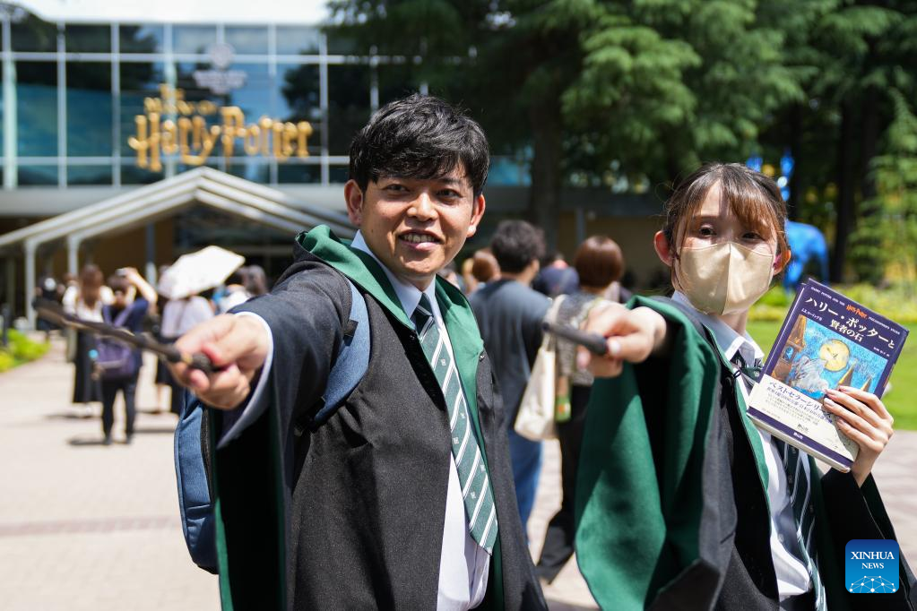 People in costumes pose for photos at the theme park "Warner Bros. Studio Tour Tokyo - The Making of Harry Potter" in Tokyo, Japan, June 16, 2023. The Harry Potter theme park officially opened Friday in Tokyo. (Xinhua/Zhang Xiaoyu)