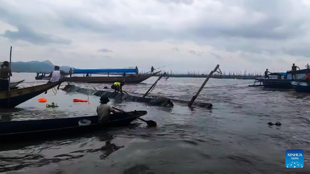 People try to rescue passengers from the capsized boat in Rizal Province, the Philippines on July 27, 2023. At least 21 people died after a passenger boat capsized in a lake in Rizal province, east of Manila, on Thursday afternoon, a spokesperson for the Philippine Coast Guard (PCG) and the police said. (Philippine Coast Guard/Handout via Xinhua)