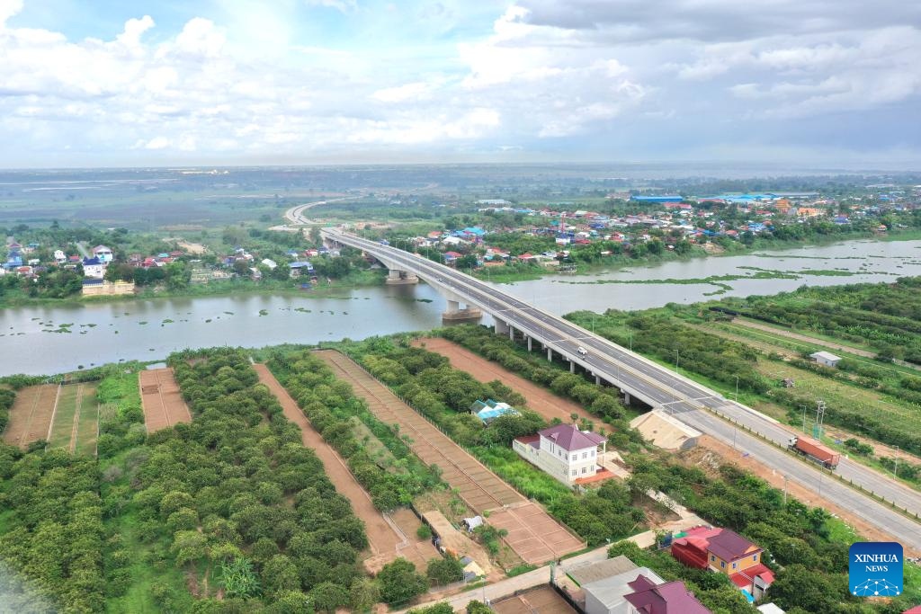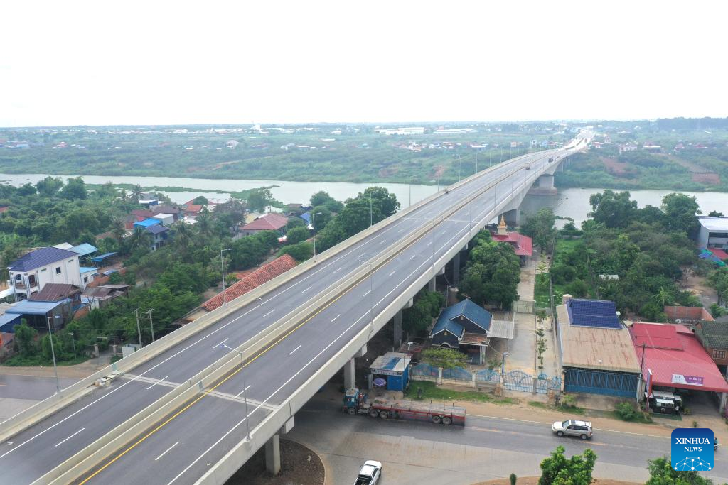KANDAL, Cambodia, Aug. 3 (Xinhua) -- Connecting the Cambodian capital Phnom Penh's southwestern to eastern suburbs, the Chinese-funded third ring road will not only help avert traffic jams, but also improve transport of goods and logistics in the city.