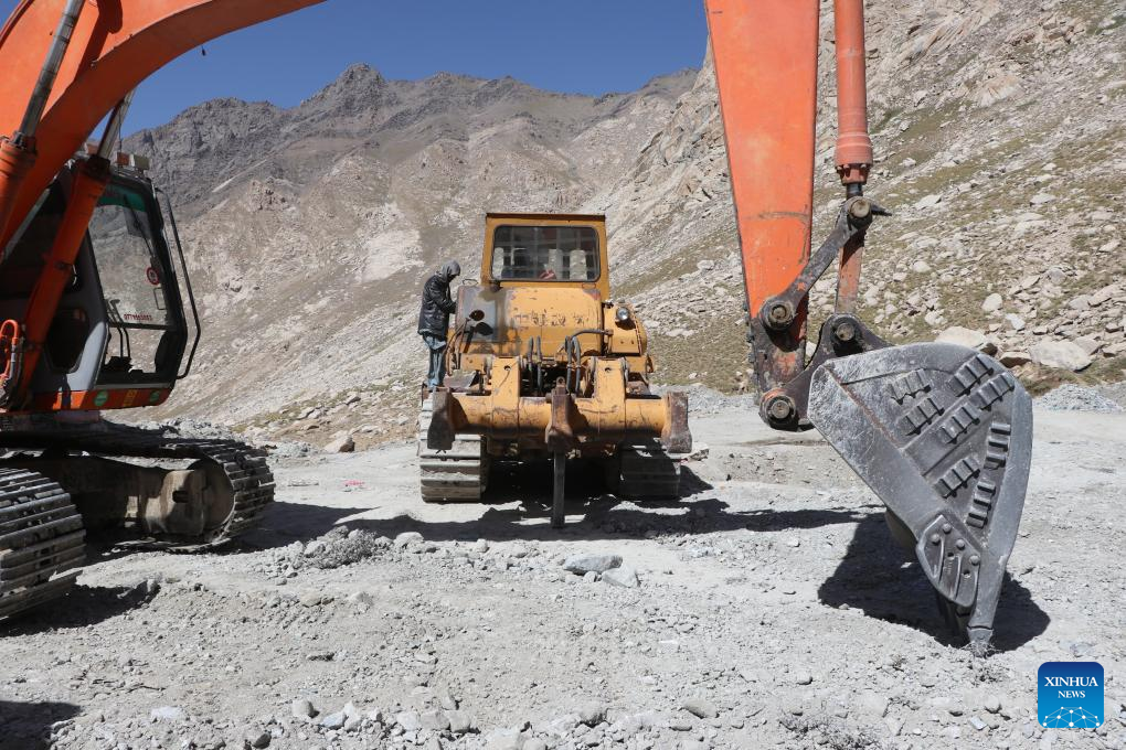This photo taken on Aug. 6, 2023 shows the reconstruction site of a road in Salang District of Baghlan Province, Afghanistan. (Photo by Zahir Khan Zahir/Xinhua)