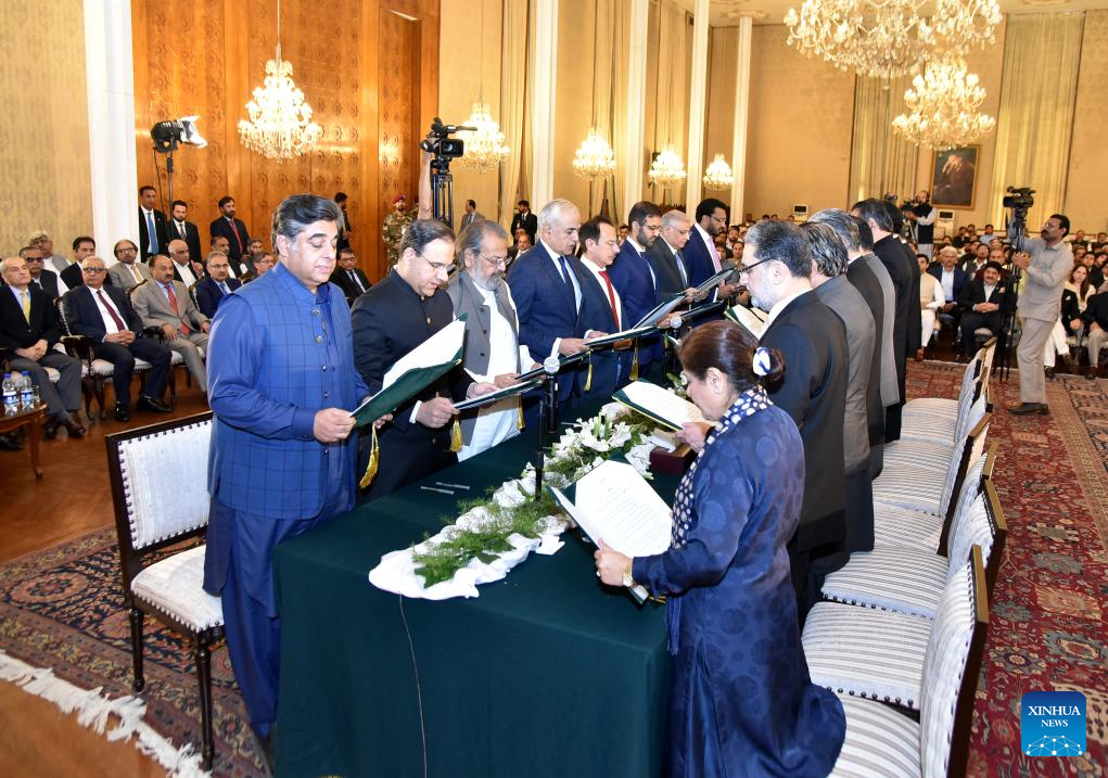 ISLAMABAD, Aug. 17 (Xinhua) -- Pakistani President Arif Alvi appointed on Thursday a 19-member federal cabinet of the interim government led by caretaker Prime Minister Anwaar-ul-Haq Kakar, the media wing of the President House told Xinhua.