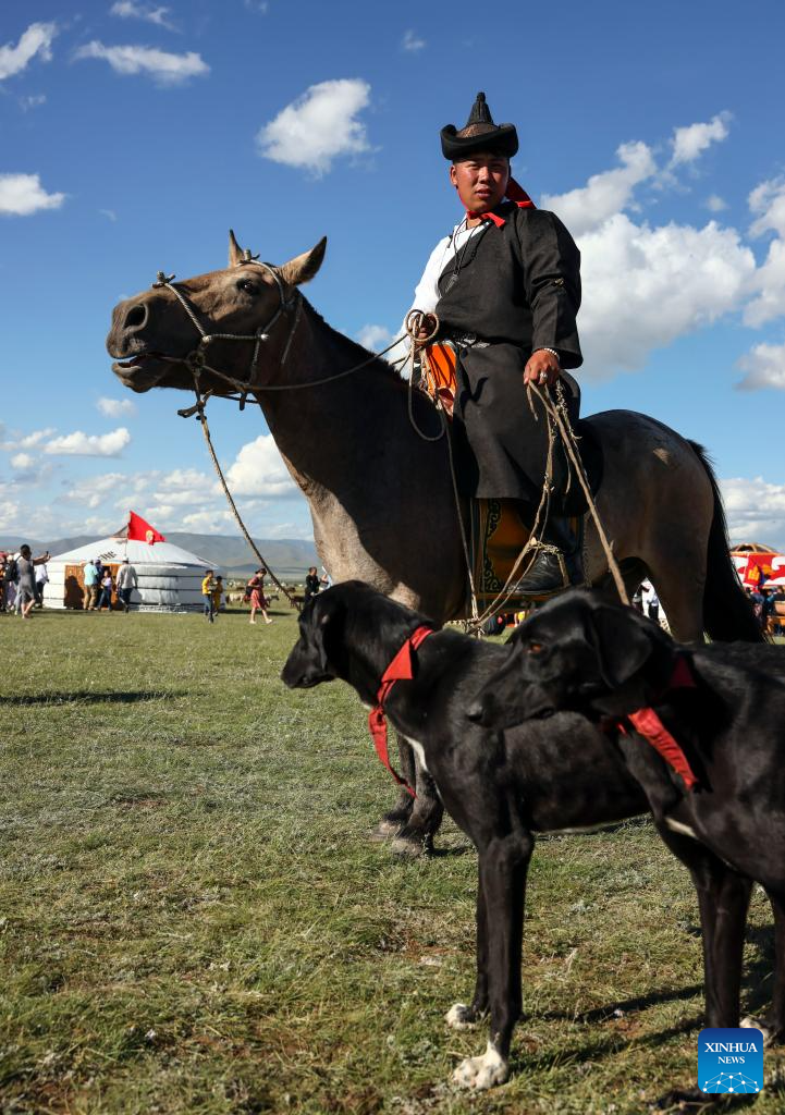 A herdsman participates in a nomadic culture festival in the Nalaikh District of Ulan Bator, Mongolia, Aug. 19, 2023. A cultural festival to promote Mongolia's nomadic intangible culture and the development of the tourism sector was held from Aug. 18 to 20 in the Nalaikh District of Ulan Bator.