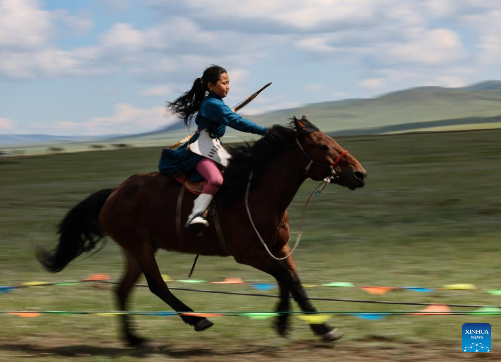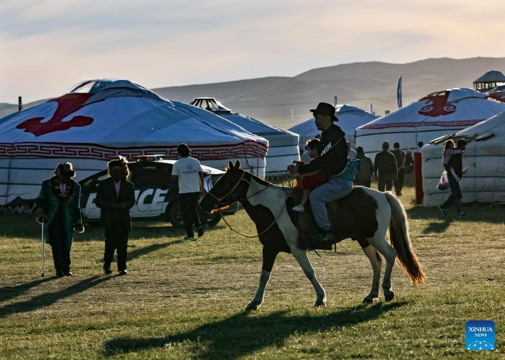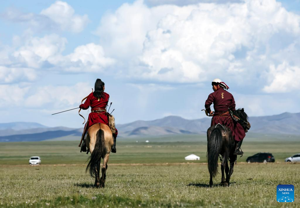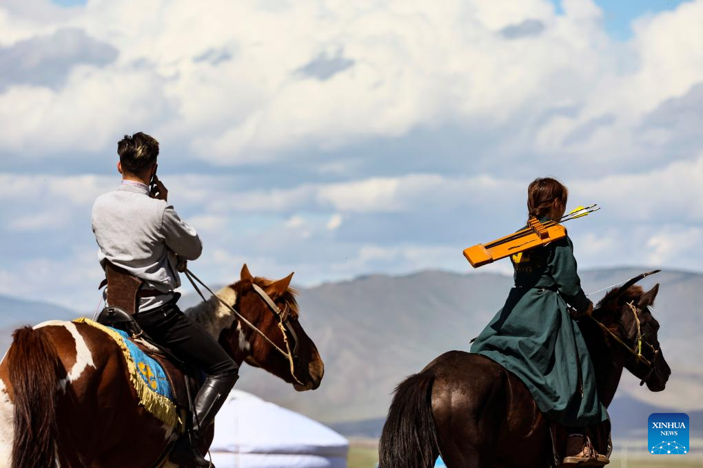 Participants attend a nomadic culture festival in the Nalaikh District of Ulan Bator, Mongolia, Aug. 19, 2023. A cultural festival to promote Mongolia's nomadic intangible culture and the development of the tourism sector was held from Aug. 18 to 20 in the Nalaikh District of Ulan Bator.