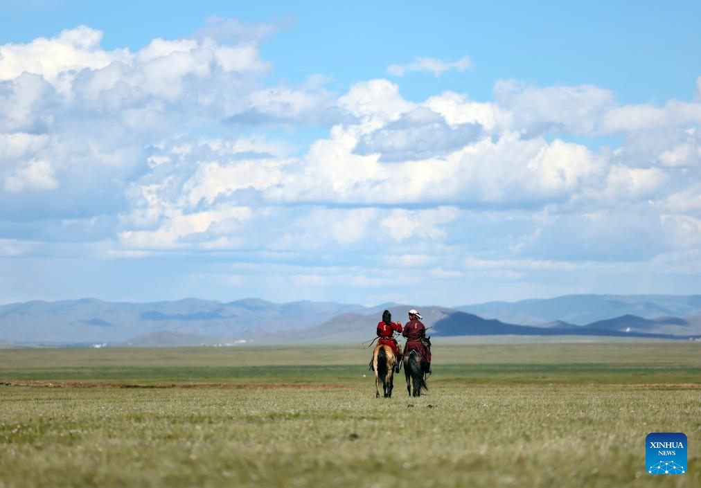 Herdsmen participate in a nomadic culture festival in the Nalaikh District of Ulan Bator, Mongolia, Aug. 19, 2023. A cultural festival to promote Mongolia's nomadic intangible culture and the development of the tourism sector was held from Aug. 18 to 20 in the Nalaikh District of Ulan Bator.