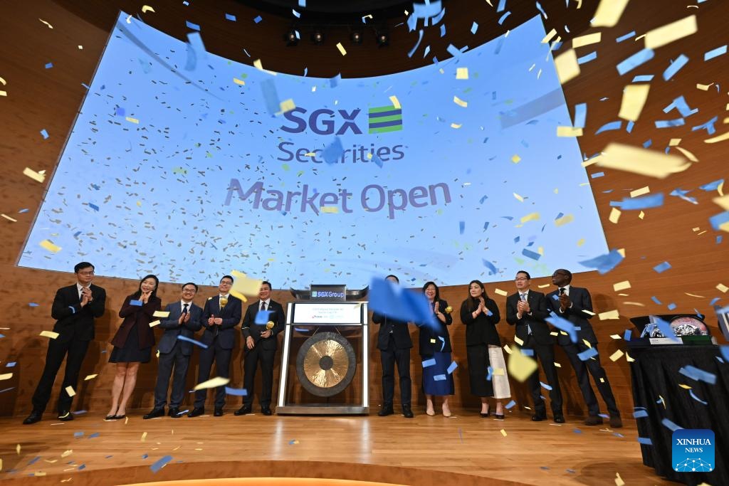 This photo taken on Aug. 25, 2023 shows the launching ceremony of the CGS Fullgoal Vietnam 30 Sector Cap ETF on Singapore Exchange (SGX Group), in Singapore.(Xinhua)