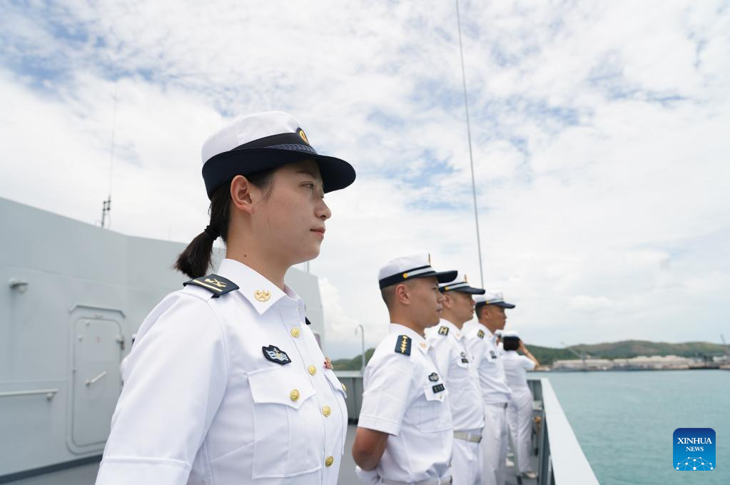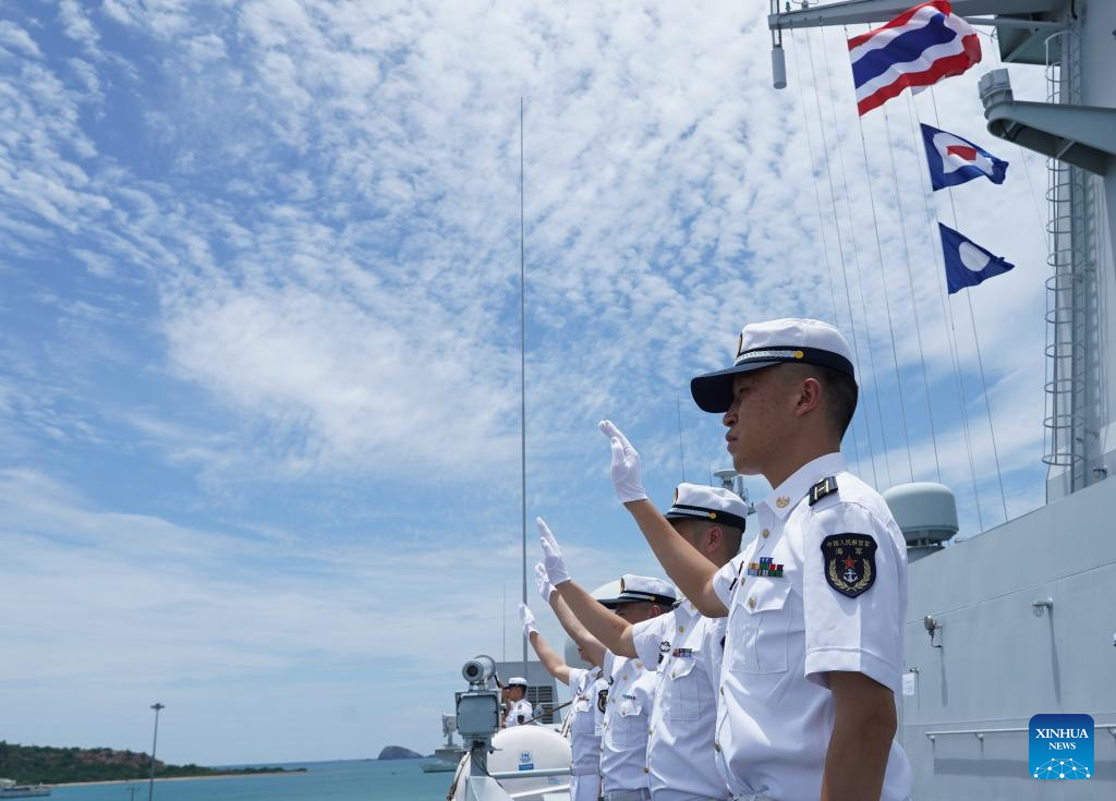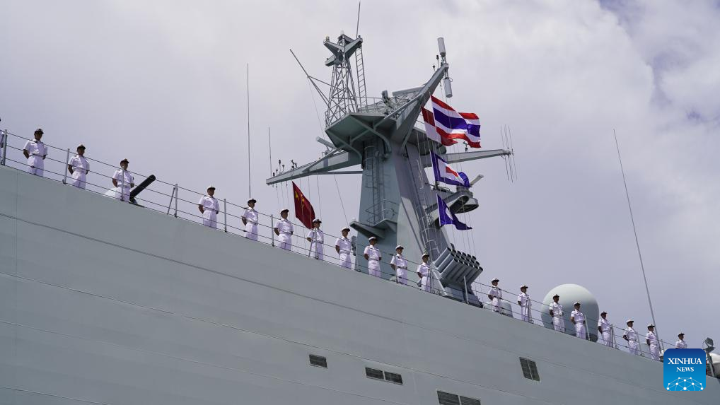 Participants from Chinese People's Liberation Army Navy arrive at the joint naval training site in Thailand, Aug. 31, 2023. A Chinese defense spokesperson on Thursday said China and Thailand will hold "Blue Strike-2023" joint naval training in the Gulf of Thailand and Sattahip in early September.(Photo by Gao Guojing/Xinhua)