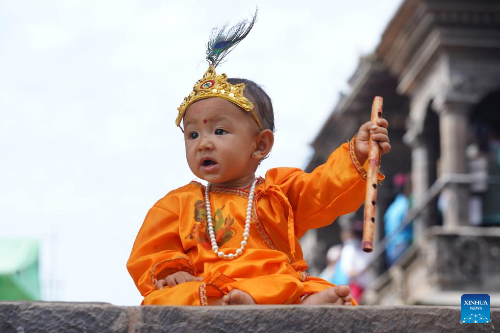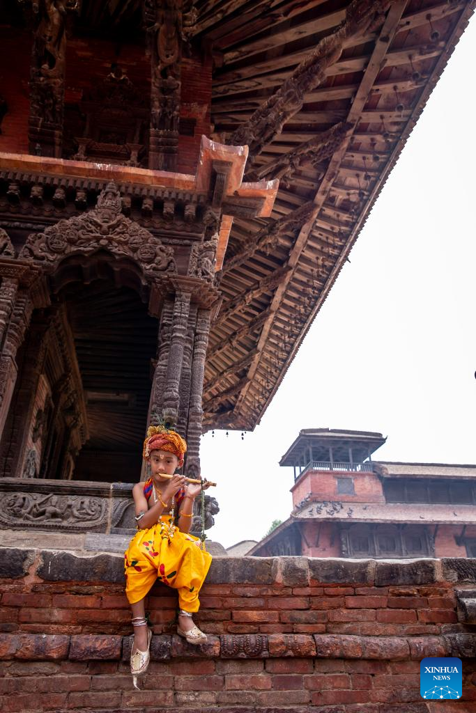 A boy dressed as Lord Krishna poses for photos during the Krishna Janmashtami festival in Lalitpur, Nepal, Sept. 6, 2023. Krishna Janmashtami festival is celebrated annually to mark the birth anniversary of Hindu God Krishna. (Photo by Hari Maharjan/Xinhua)
