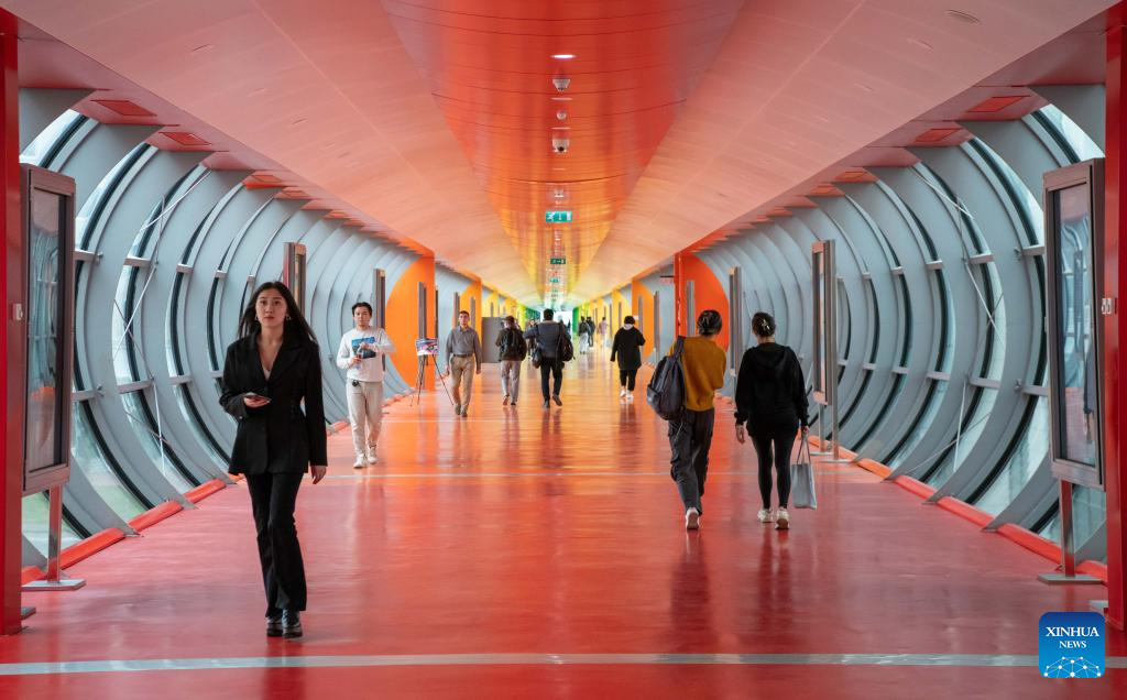 This photo taken on Sept. 6, 2023 shows an interior view of the main building of Nazarbayev University in Astana, Kazakhstan. Nazarbayev University is one of the most influential universities in Kazakhstan. (Xinhua/Wu Huiwo)