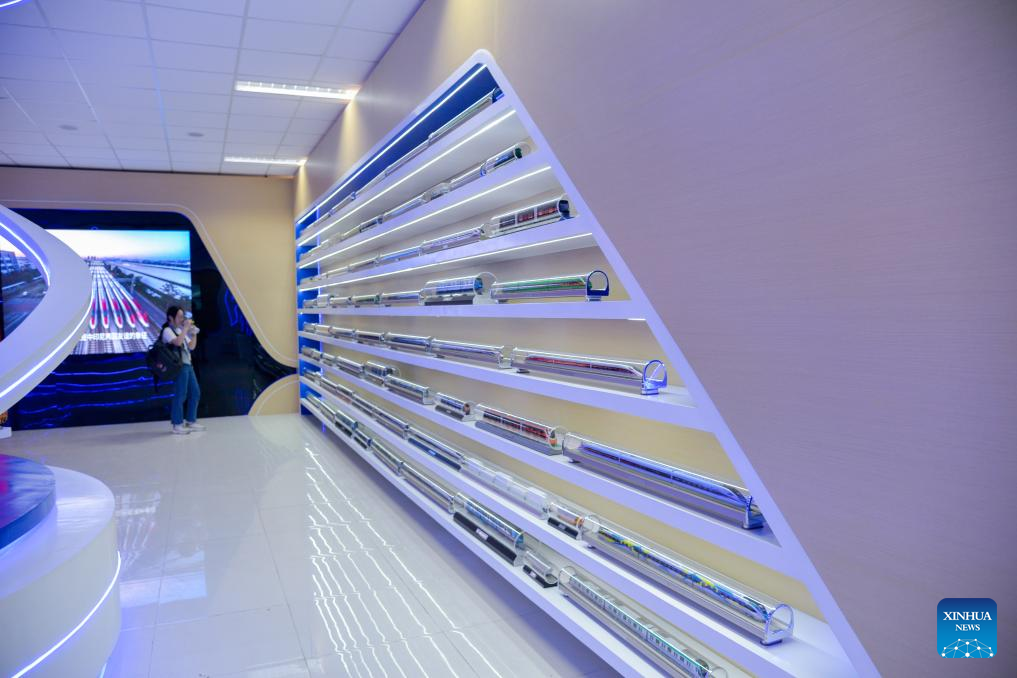 It features an exhibition hall, covering an area of nearly 200 square meters, which has video and VR presentations to display the related technological achievements, 40 different models of Chinese trains, and various Chinese books.