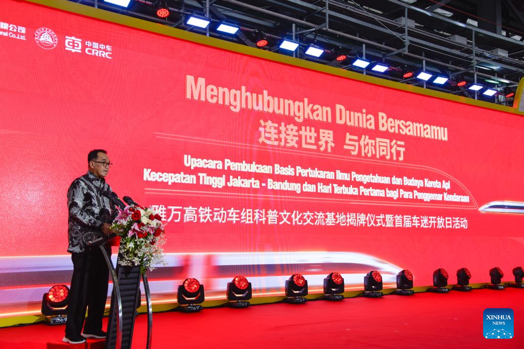 JAKARTA, Sept. 10 (Xinhua) -- The opening ceremony of the Jakarta-Bandung High-Speed Railway (HSR) Electric Multiple Unit (EMU) Educational and Cultural Exchange Base, along with the first Open Day for Rail Enthusiasts event, was held in Indonesia's Bandung on Saturday.