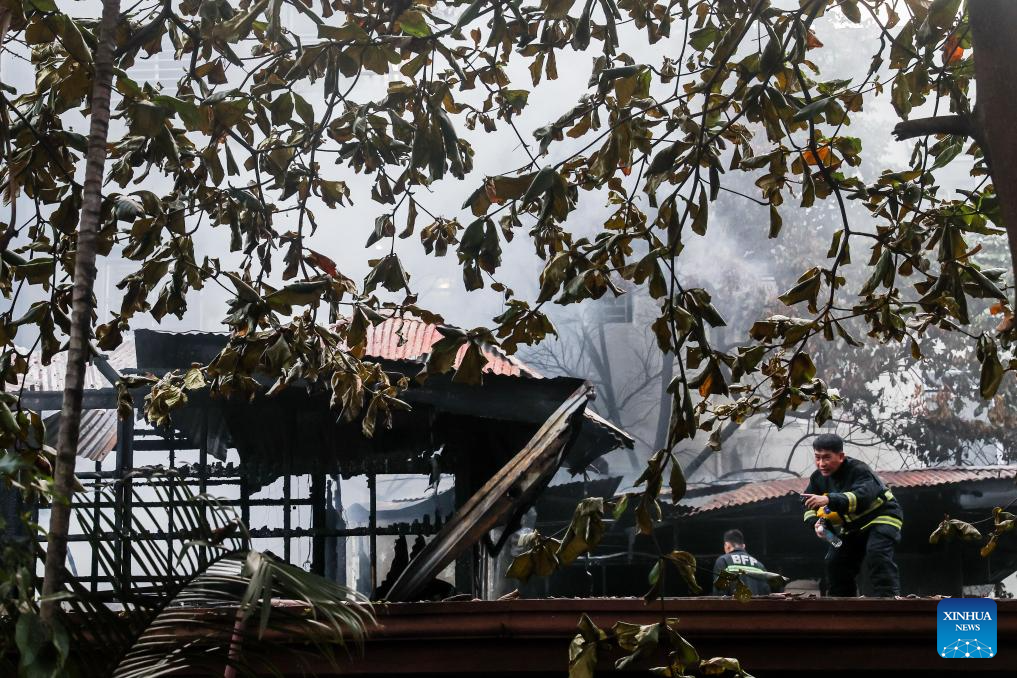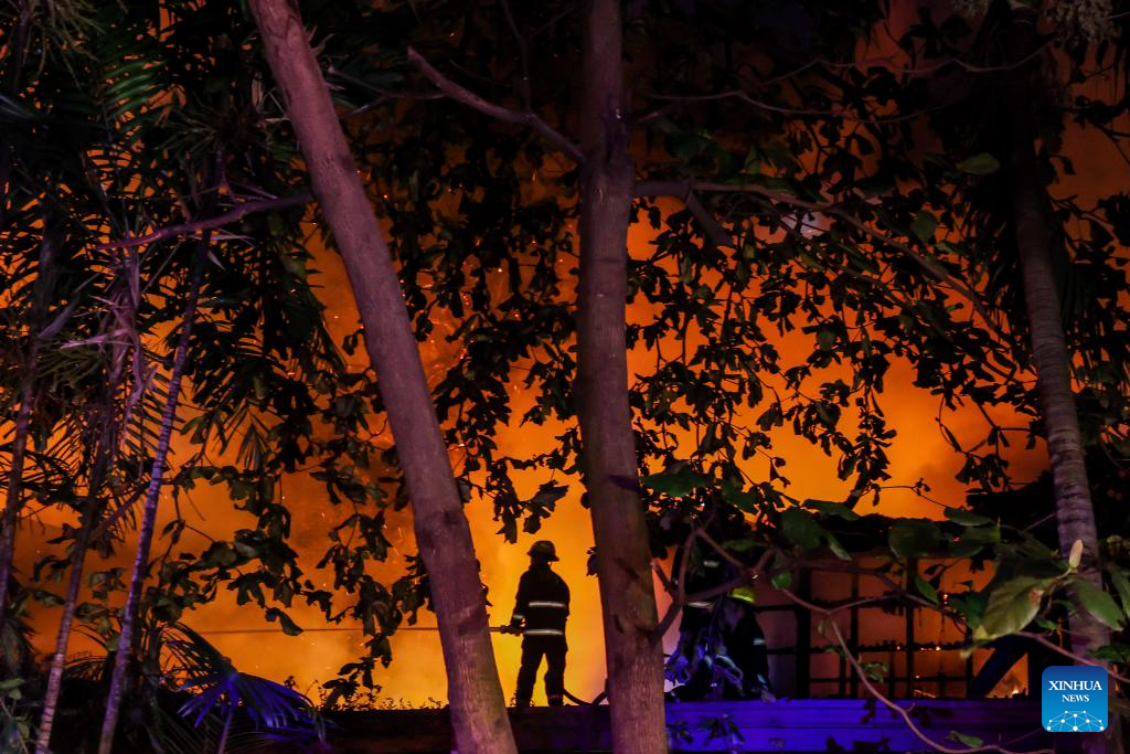 Firefighters are pictured at the site of a house fire in Quezon City, the Philippines on Sept. 11, 2023. (Xinhua/Rouelle Umali)