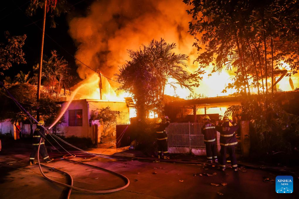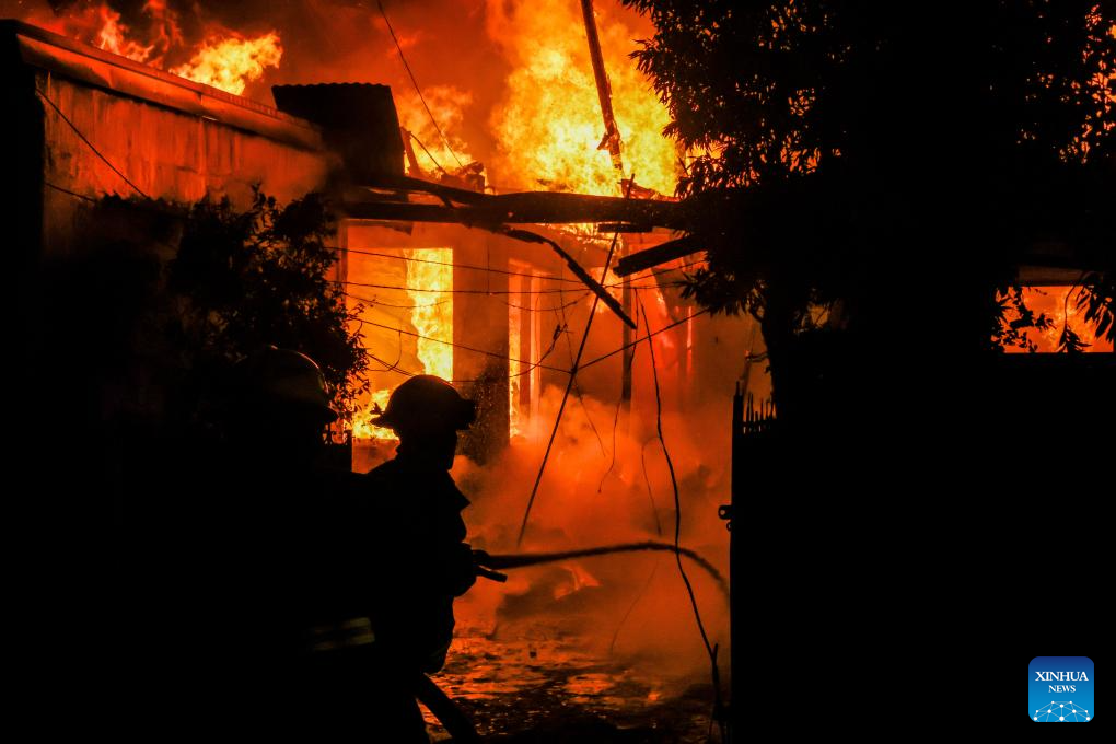 Firefighters try to put out a house fire in Quezon City, the Philippines on Sept. 11, 2023. (Xinhua/Rouelle Umali)