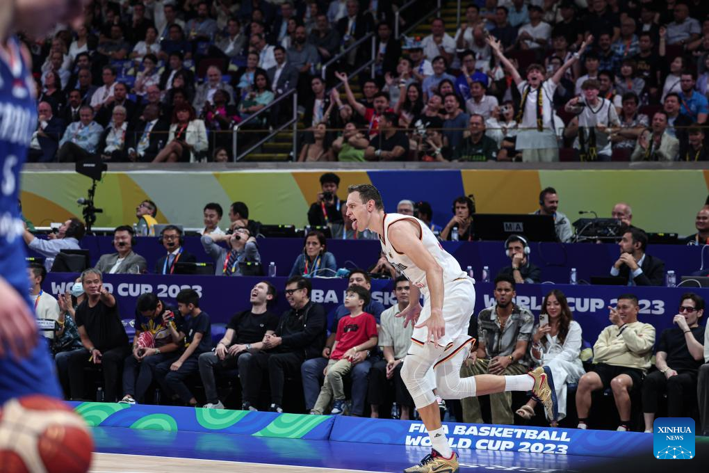 Johannes Voigtmann of Germany celebrates during the final between Germany and Serbia at the 2023 FIBA World Cup in Manila, the Philippines, Sept. 10, 2023. (Xinhua/Wu Zhuang)