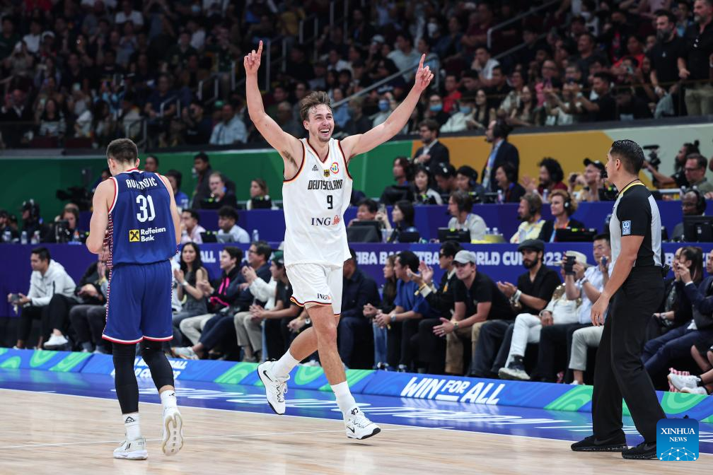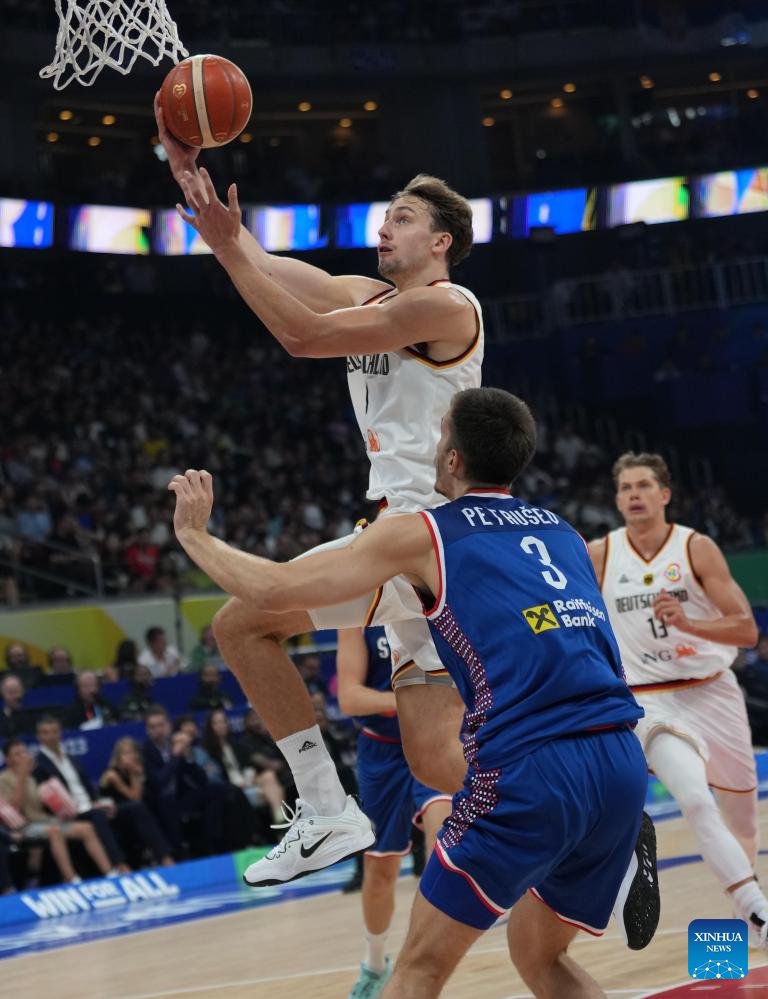 Franz Wagner (C) of Germany competes during the final between Germany and Serbia at the 2023 FIBA World Cup in Manila, the Philippines, Sept. 10, 2023. (Xinhua/Wu Zhuang)