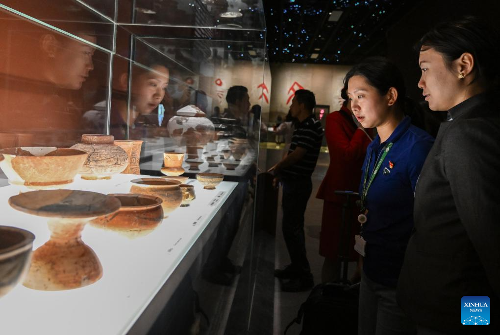 This photo taken on Sept. 15, 2023 shows exhibits displayed at the Chinese Archaeological Museum in Beijing, capital of China. The Chinese Archaeological Museum was opened to the public on Friday. (Xinhua/Li He)