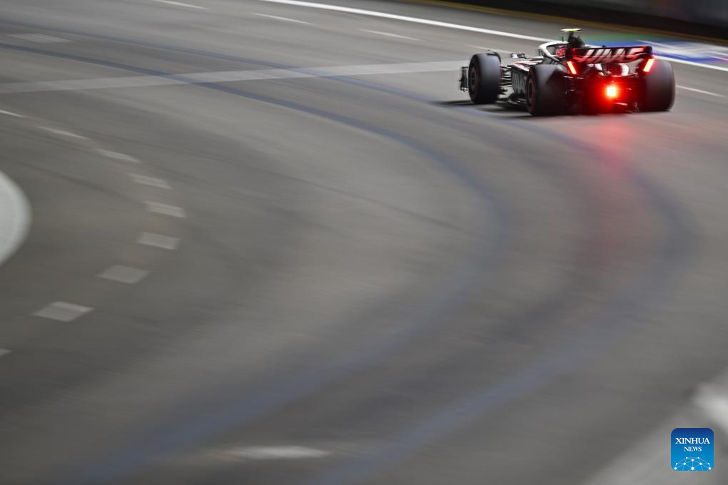 Haas driver Nico Hulkenberg of Germany races during the qualifying round of the Formula One Singapore Grand Prix at the Marina Bay Street Circuit on Sept. 16, 2023. (Photo by Then Chih Wey/Xinhua)