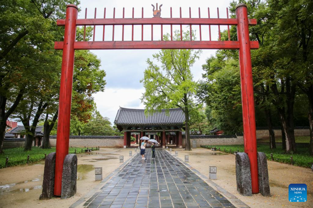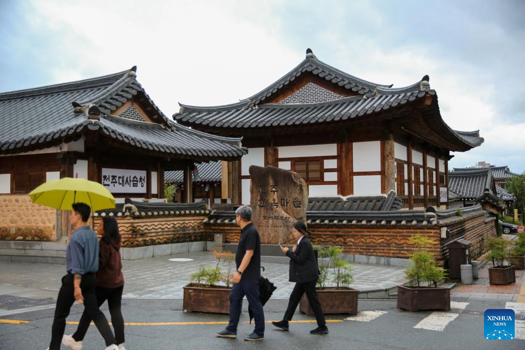 Tourists visit a Hanok village in Jeonju, South Korea, Sept. 20, 2023. (Xinhua/Wang Yiliang)