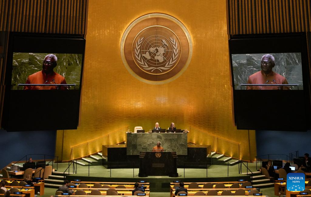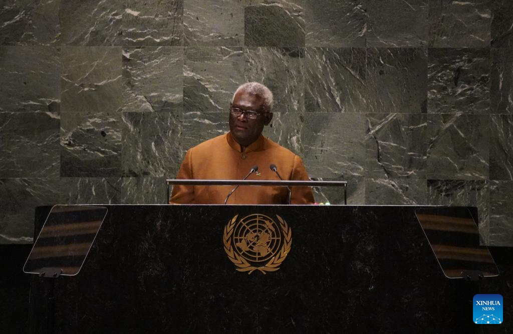 UNITED NATIONS, Sept. 22 (Xinhua) -- Prime Minister of the Solomon Islands Manasseh Sogavare on Friday blasted Japan's discharge of nuclear-contaminated water into the ocean, describing it as an attack on global trust and solidarity.