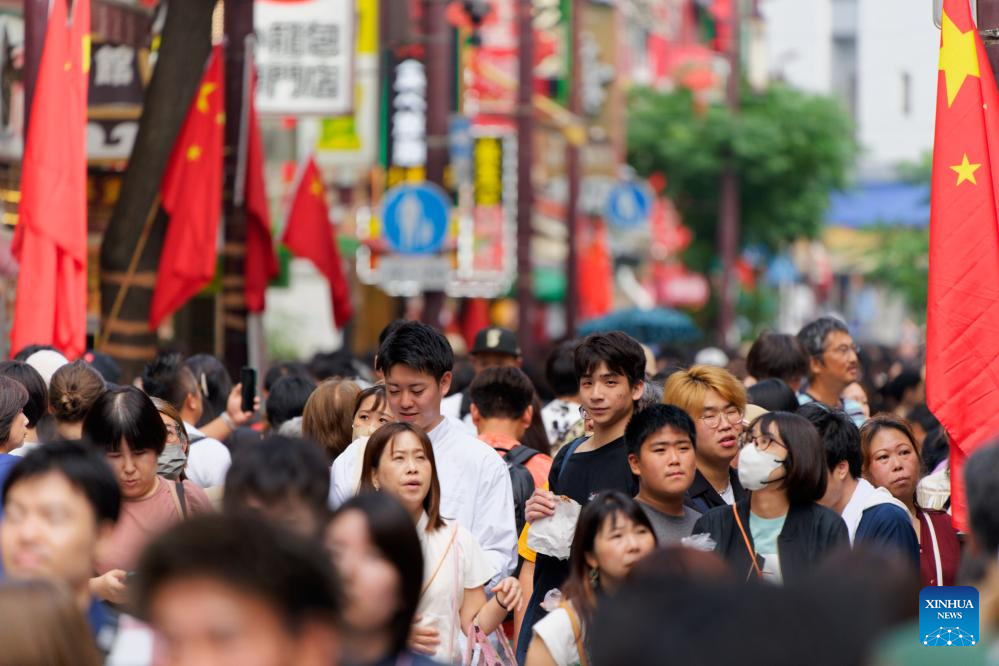 Tourists visit the Chinatown of Yokohama, Japan, Oct. 1, 2023. Chinese traditional performances were staged in the Chinatown of Yokohama on Sunday, attracting tourists coming here to experience Chinese culture. (Xinhua/Zhang Xiaoyu)