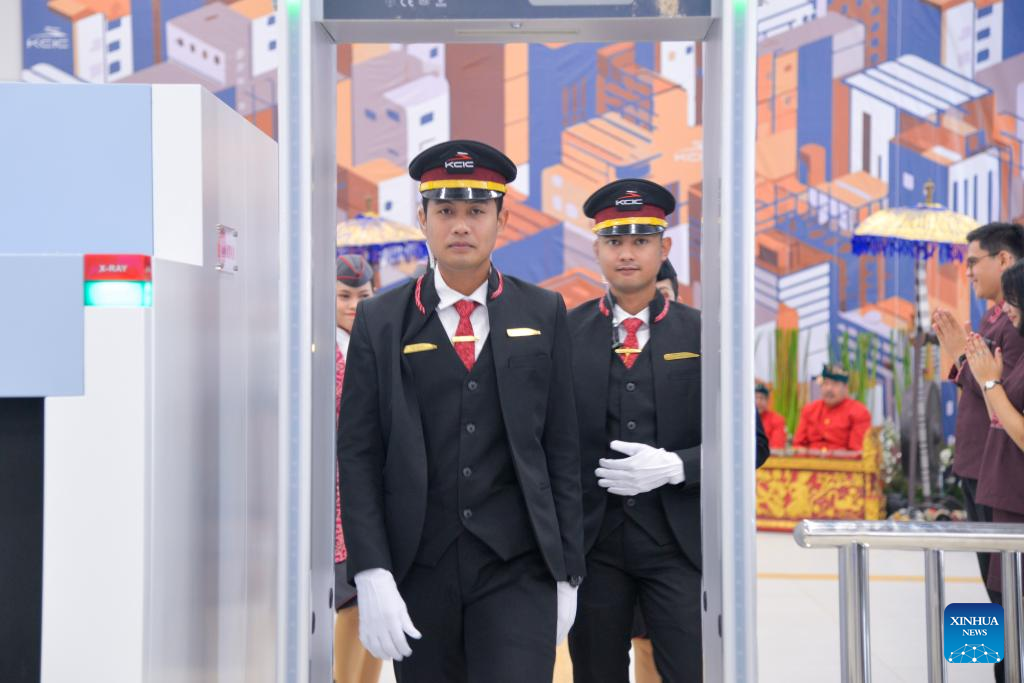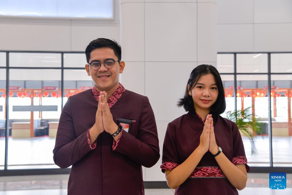 Crew members of a high-speed train greet passengers and guests at Halim Station in Jakarta, Indonesia, Oct. 2, 2023. Indonesian President Joko Widodo declared the official operation of the Jakarta-Bandung High-Speed Railway (HSR) at Halim Station in Jakarta Monday morning. (Xinhua/Xu Qin)