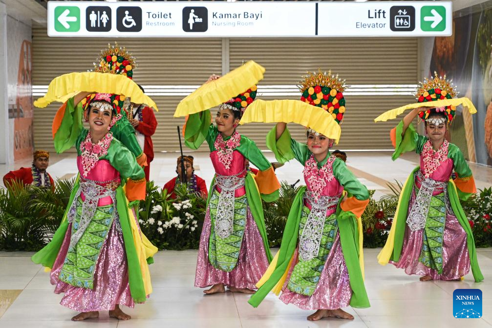 Dancers stage a performance to welcome participants of a ceremony marking the official operation of the Jakarta-Bandung High-Speed Railway at Halim Station in Jakarta, Indonesia, Oct. 2, 2023. Indonesian President Joko Widodo declared the official operation of the Jakarta-Bandung High-Speed Railway (HSR) here on Monday morning. (Xinhua/Agung Kuncahya B.)