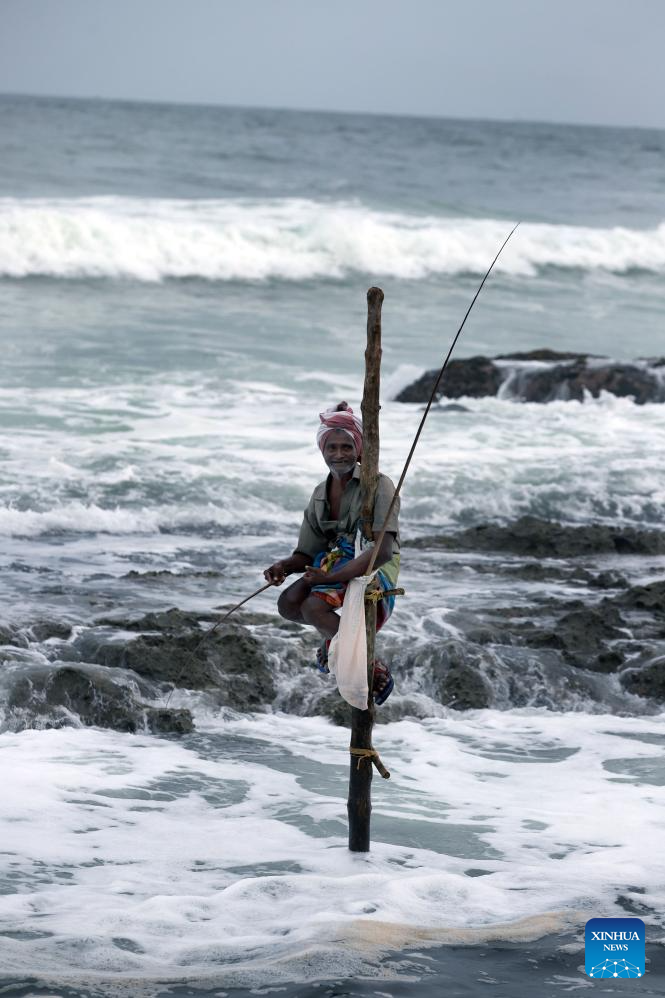 Stilt fishing is a method of fishing unique to the island country of Sri Lanka. Local fishermen sit on a crossbar called "petta", which is tied to a vertical pole driven into the sand a few meters offshore. From that position, a fisherman will cast his rod and wait until a fish takes the bait. (Photo by Ajith Perera/Xinhua)