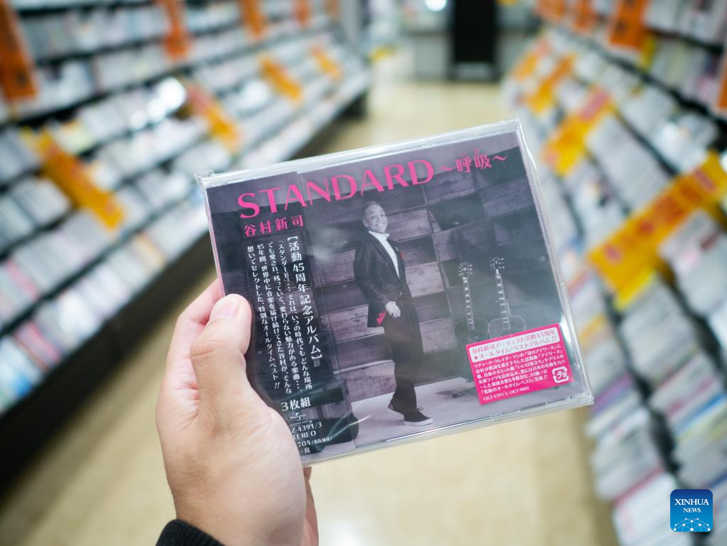 This photo taken on Oct. 16, 2023 shows a record of Japanese singer-songwriter Shinji Tanimura at a record shop in Tokyo, Japan. Japanese singer-songwriter Shinji Tanimura, who was known for hit songs including "Subaru," or Star, which also made him popular in China, died earlier this month at the age of 74, his music agency said Monday. (Xinhua/Zhang Xiaoyu)