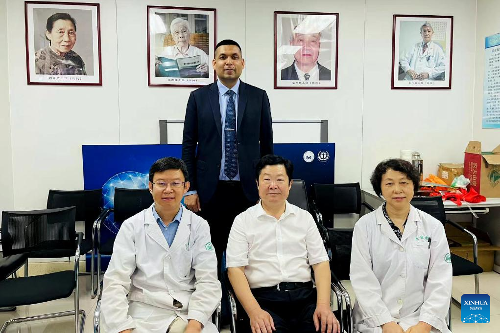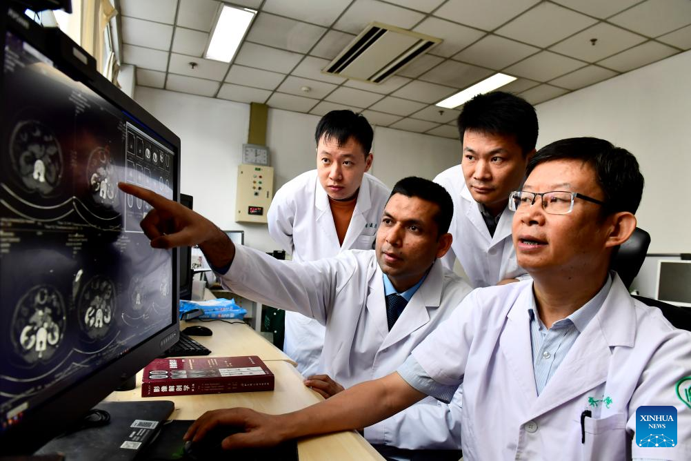 Muhammed Shahbaz works at the Qilu Hospital of Shandong University in Jinan, east China's Shandong Province, Oct. 16, 2023.