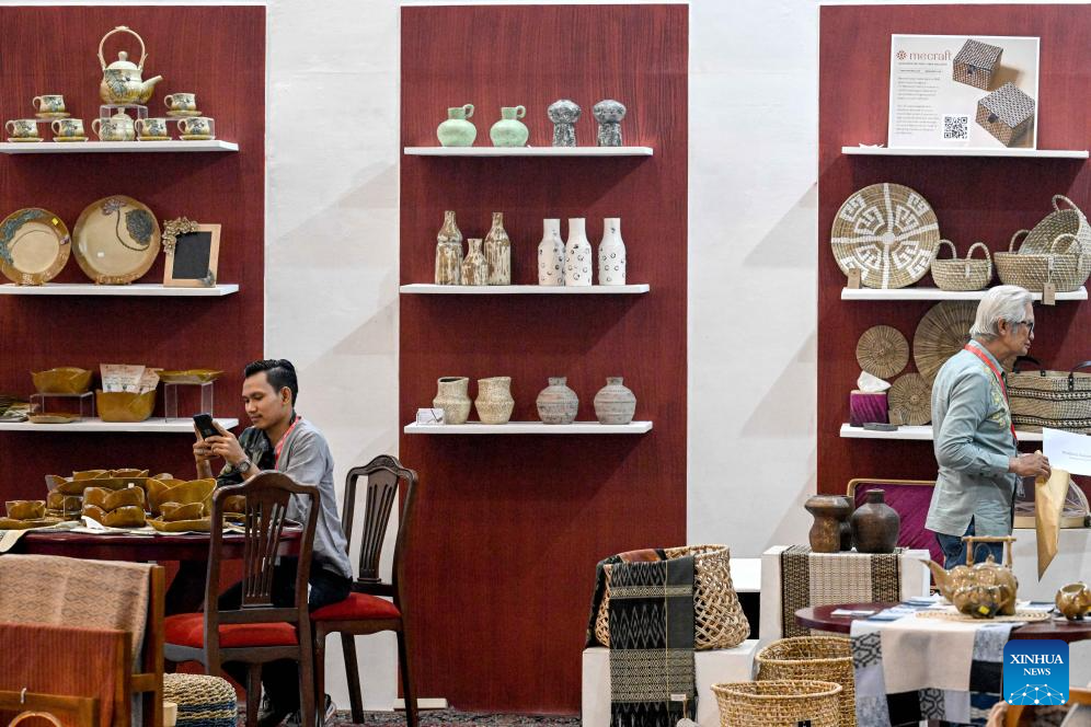 People visit Indonesia Trade Expo 2023 in Tangerang of Banten province, Indonesia, on Oct. 18, 2023. The five-day expo presents exhibits from various industrial sectors including mining, agriculture and crafts. (Xinhua/Agung Kuncahya B.)