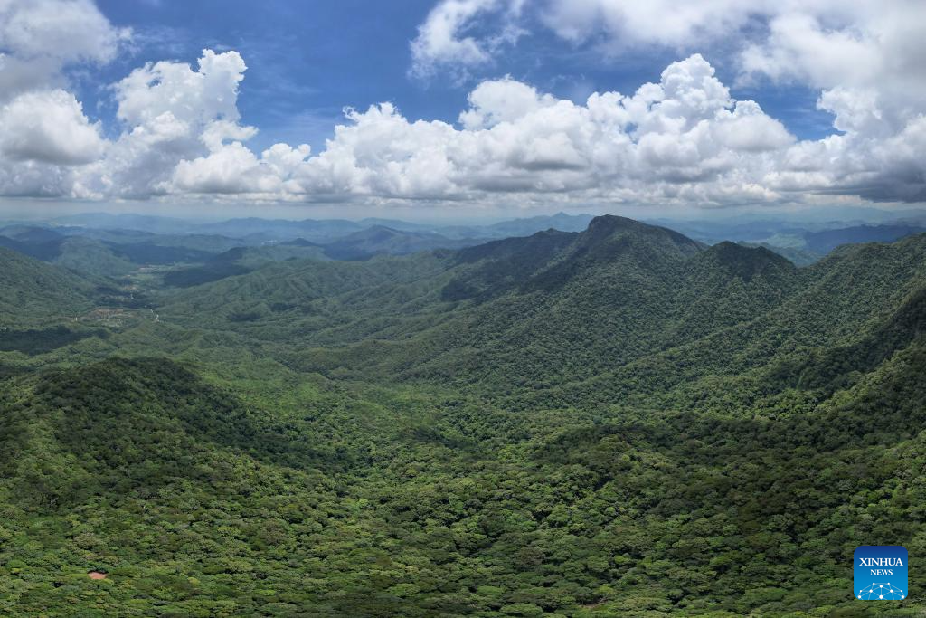 This aerial photo taken on June 29, 2022 shows the Bawangling area of Hainan Tropical Rainforest National Park, south China's Hainan Province. (Xinhua/Zhang Liyun)