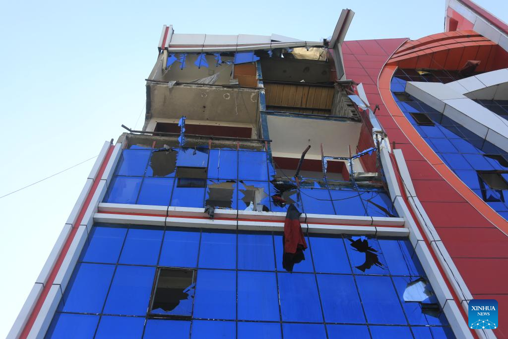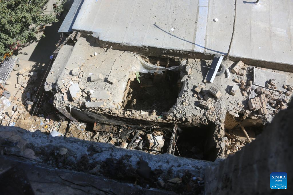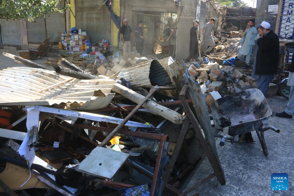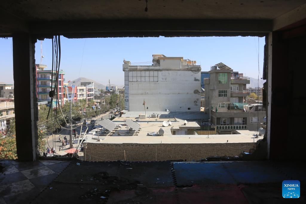 This photo taken on Oct. 27, 2023 shows the blast site at the Police District 18 of Kabul, Afghanistan. Two persons were killed and nine others were injured as a blast hit the Police District 18 of Kabul, the capital of Afghanistan, on Thursday evening, Kabul police spokesman Khalid Zadran said. (Photo by Saifurahman Safi/Xinhua)